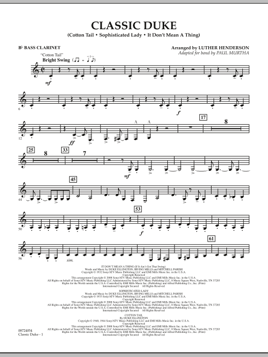 Download or print Paul Murtha Classic Duke - Bb Bass Clarinet sheet music, chords and digital score arranged for Concert Band. This Concert score includes 4 page(s).