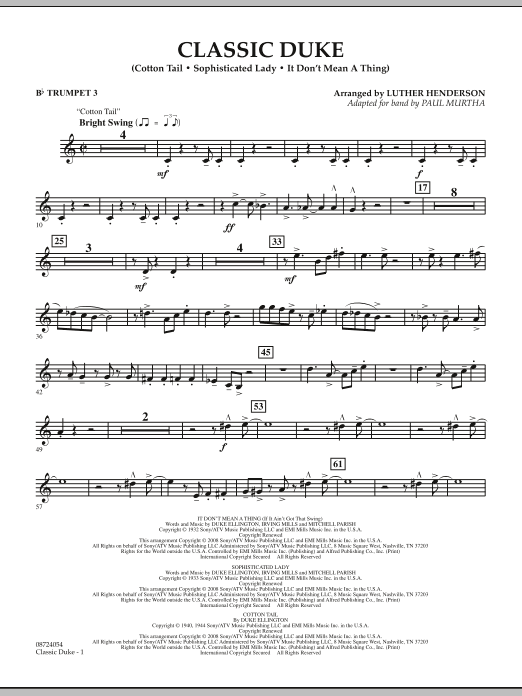 Download or print Paul Murtha Classic Duke - Bb Trumpet 3 sheet music, chords and digital score arranged for Concert Band. This Concert score includes 4 page(s).