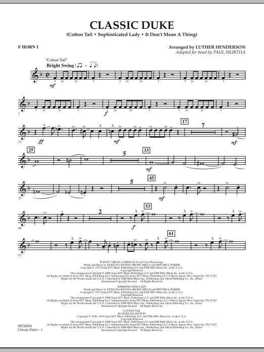 Download or print Paul Murtha Classic Duke - F Horn 1 sheet music, chords and digital score arranged for Concert Band. This Concert score includes 4 page(s).