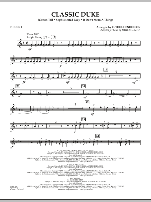 Download or print Paul Murtha Classic Duke - F Horn 4 sheet music, chords and digital score arranged for Concert Band. This Concert score includes 4 page(s).