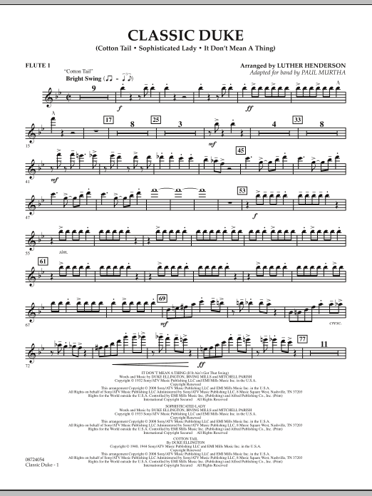Download or print Paul Murtha Classic Duke - Flute 1 sheet music, chords and digital score arranged for Concert Band. This Concert score includes 3 page(s).