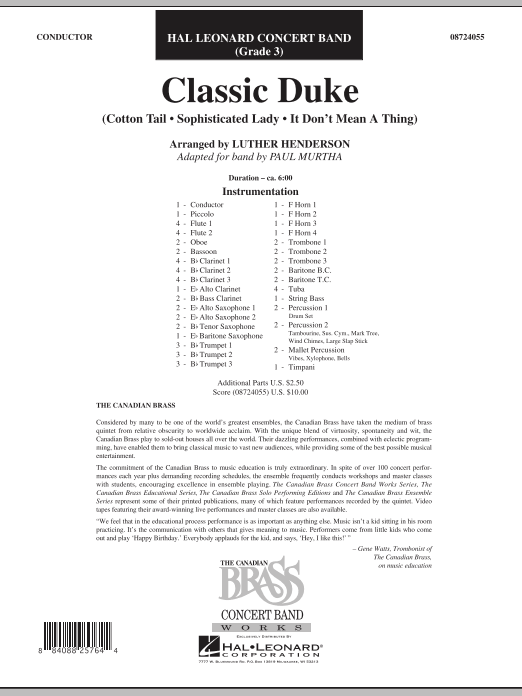 Download or print Paul Murtha Classic Duke - Full Score sheet music, chords and digital score arranged for Concert Band. This Concert score includes 42 page(s).