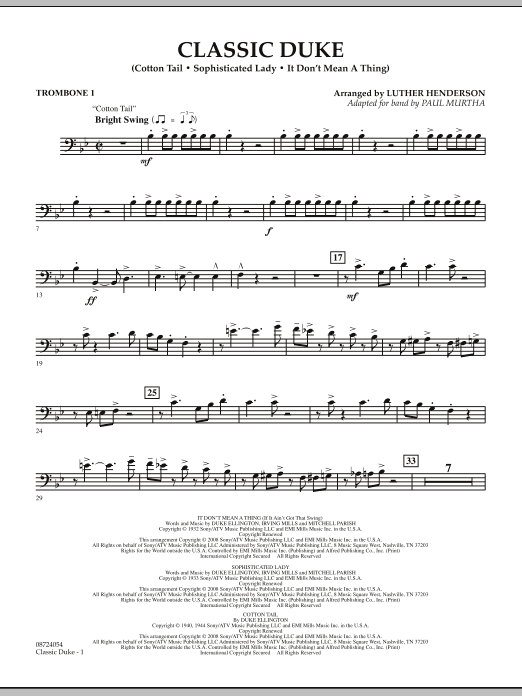 Download or print Paul Murtha Classic Duke - Trombone 1 sheet music, chords and digital score arranged for Concert Band. This Concert score includes 4 page(s).