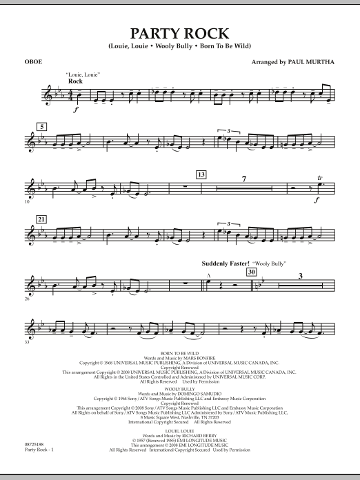Download or print Paul Murtha Party Rock - Oboe sheet music, chords and digital score arranged for Concert Band. This Rock score includes 2 page(s).