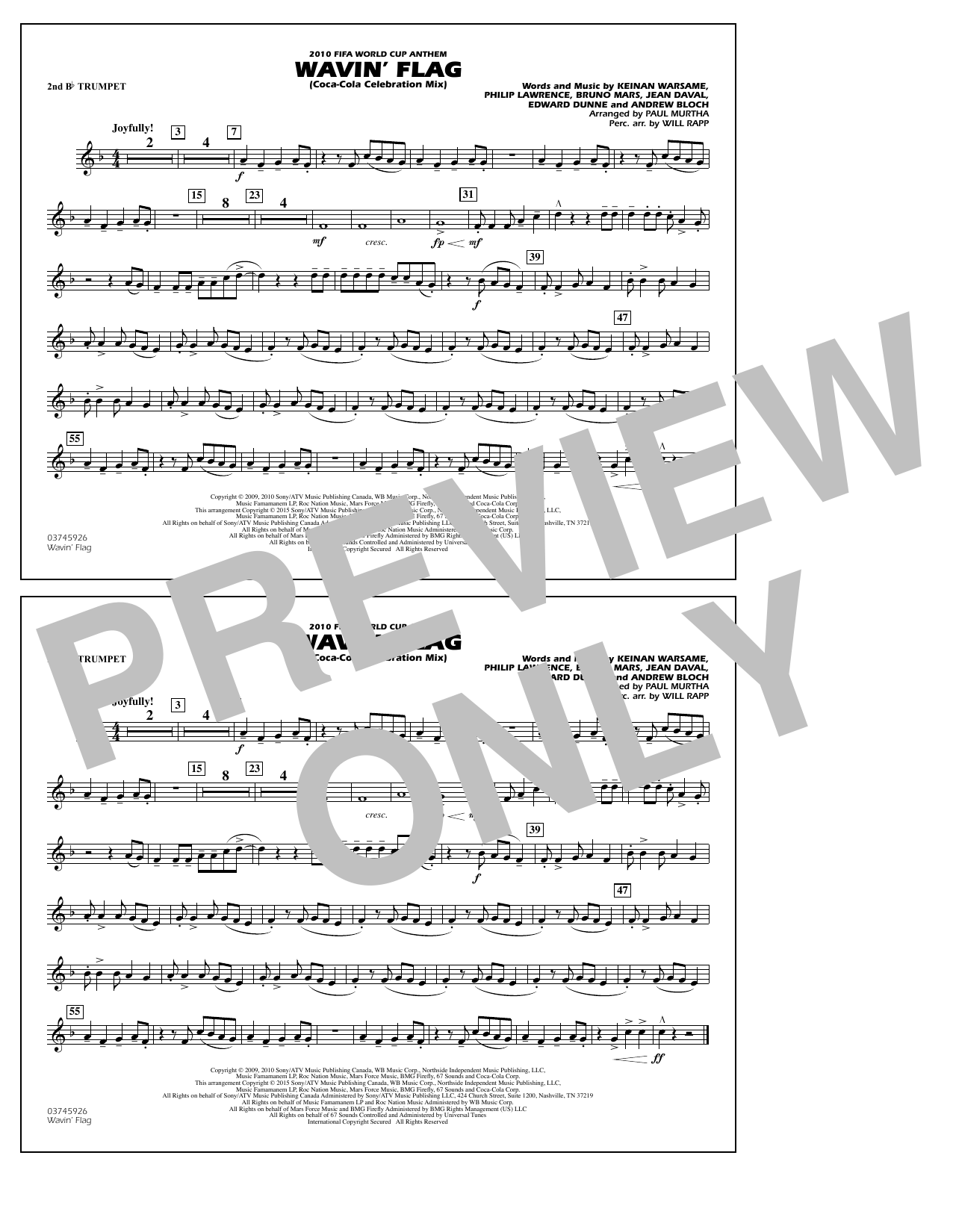 Download or print Paul Murtha Wavin' Flag - 2nd Bb Trumpet sheet music, chords and digital score arranged for Marching Band. This African score includes 1 page(s).