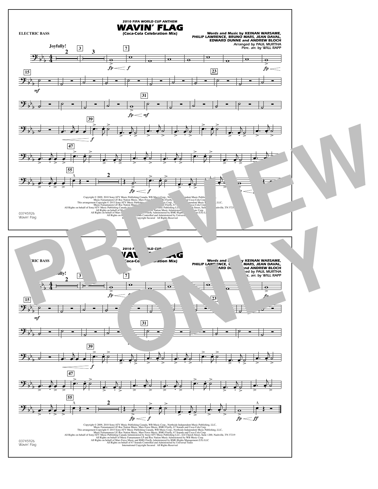 Quick facts Wavin' Flag - Electric Bass about digital sheet music