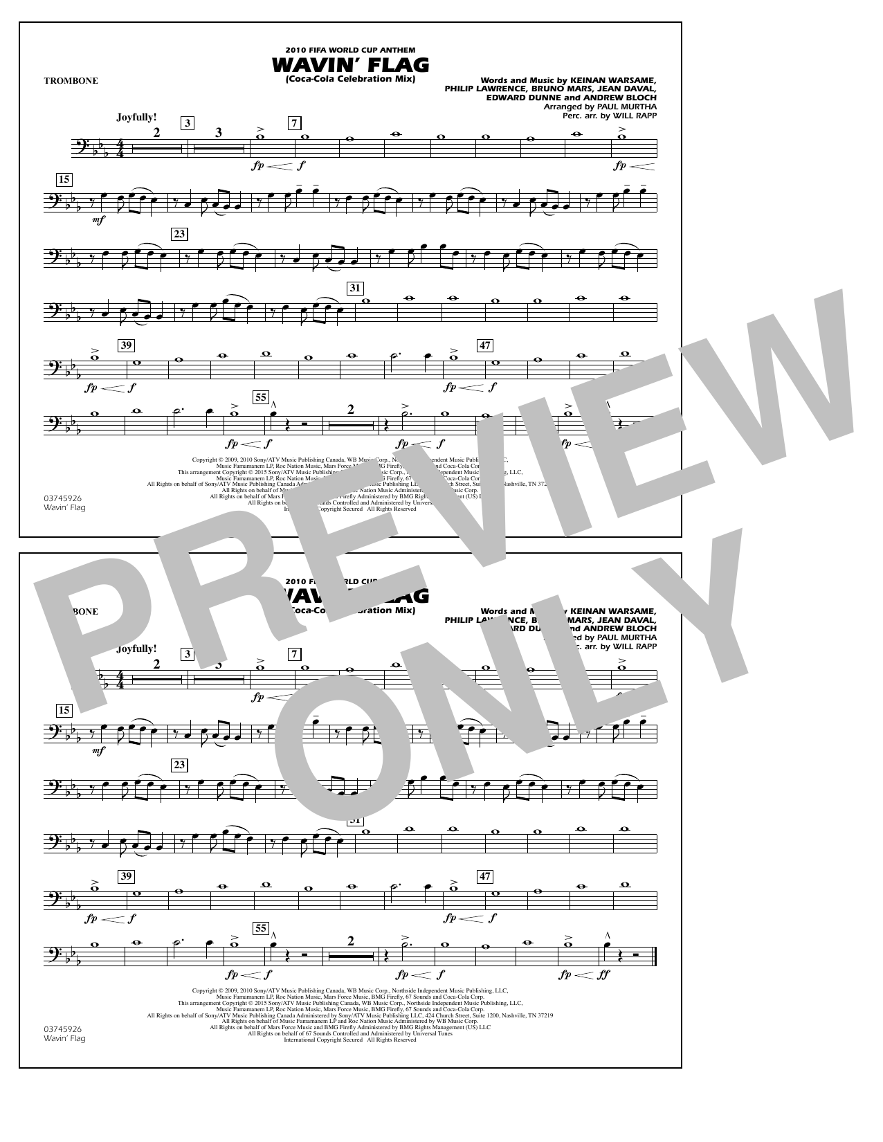 Quick facts Wavin' Flag - Trombone about digital sheet music