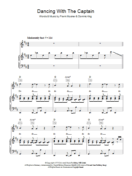 Download or print Paul Nicholas Dancing With The Captain sheet music, chords and digital score arranged for Piano, Vocal & Guitar Chords. This Disco score includes 4 page(s).