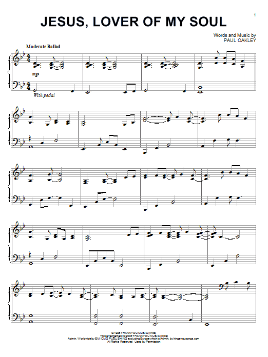 Download or print Paul Oakley Jesus, Lover Of My Soul sheet music, chords and digital score arranged for Piano Solo. This Christian score includes 4 page(s).