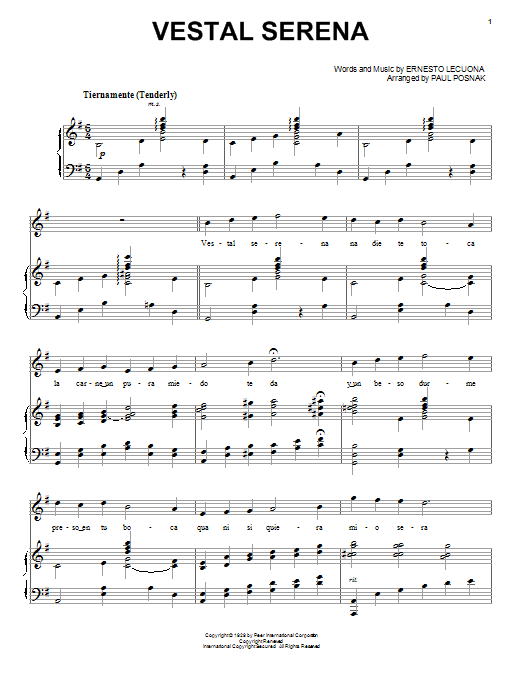 Download or print Paul Posnak Vestal Serena sheet music, chords and digital score arranged for Piano & Vocal. This Jazz score includes 5 page(s).