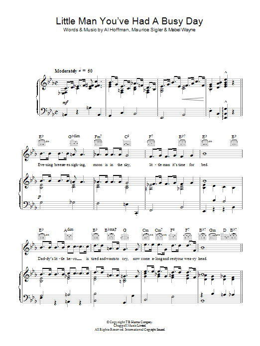 Download or print Paul Robeson Little Man You've Had A Busy Day sheet music, chords and digital score arranged for Piano, Vocal & Guitar Chords. This Standards score includes 5 page(s).