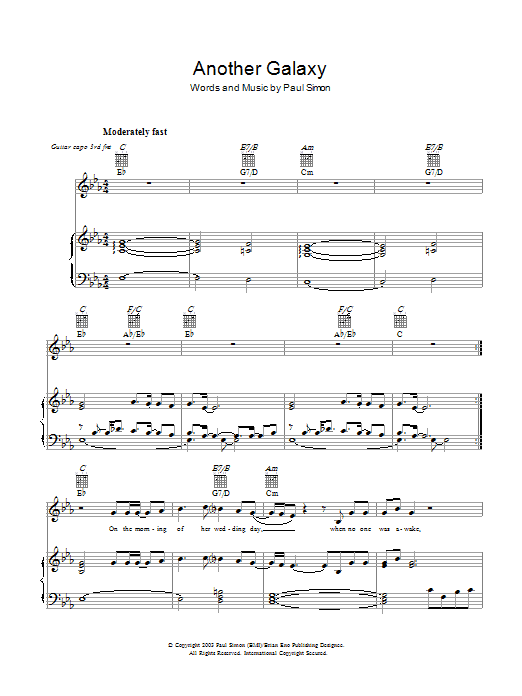 Download or print Paul Simon Another Galaxy sheet music, chords and digital score arranged for Piano, Vocal & Guitar Chords. This Folk score includes 5 page(s).