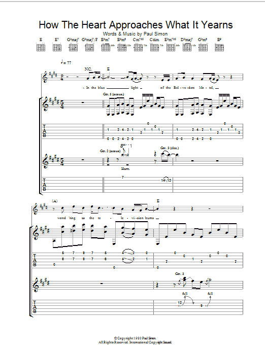 Download or print Paul Simon How The Heart Approaches What It Yearns sheet music, chords and digital score arranged for Piano, Vocal & Guitar Chords. This Folk score includes 4 page(s).