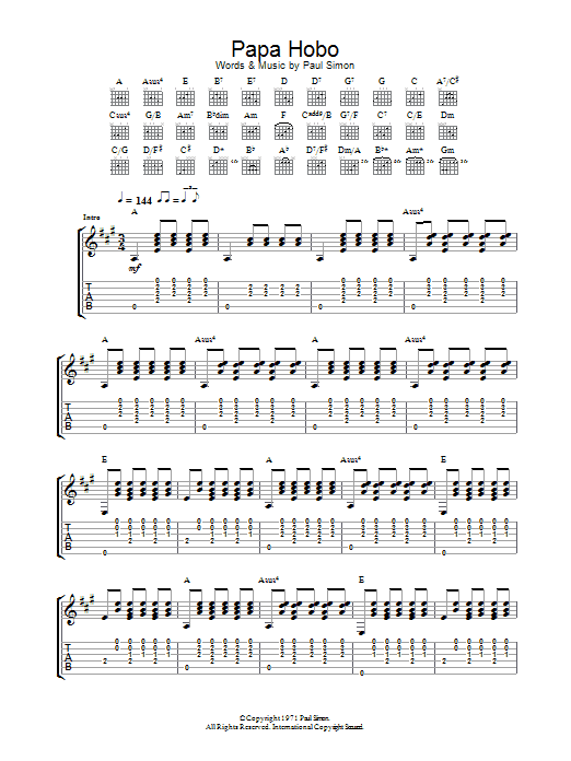Download or print Paul Simon Papa Hobo sheet music, chords and digital score arranged for Piano, Vocal & Guitar Chords. This Folk score includes 7 page(s).