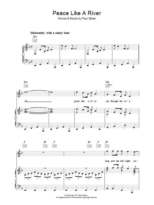 Download or print Paul Simon Peace Like A River sheet music, chords and digital score arranged for Guitar Chords/Lyrics. This Pop score includes 2 page(s).