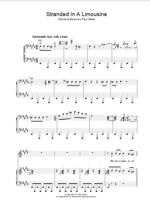 Download or print Paul Simon Stranded In A Limousine sheet music, chords and digital score arranged for Piano, Vocal & Guitar Chords. This Folk score includes 10 page(s).