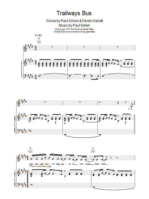 Download or print Paul Simon Trailways Bus sheet music, chords and digital score arranged for Guitar Chords/Lyrics. This Pop score includes 3 page(s).