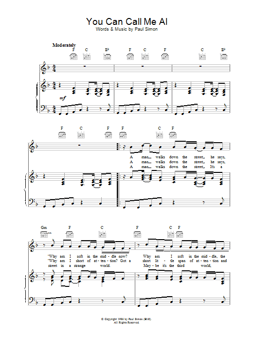 Download or print Paul Simon You Can Call Me Al sheet music, chords and digital score arranged for Recorder Solo. This Pop score includes 1 page(s).