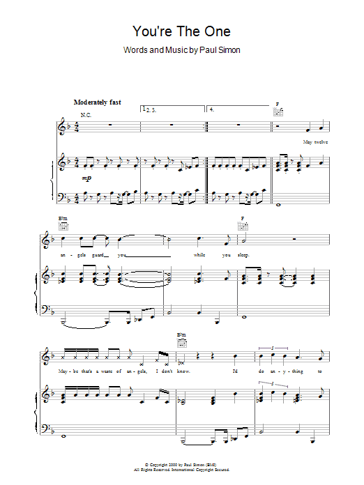 Download or print Paul Simon You're The One sheet music, chords and digital score arranged for Guitar Chords/Lyrics. This Pop score includes 3 page(s).
