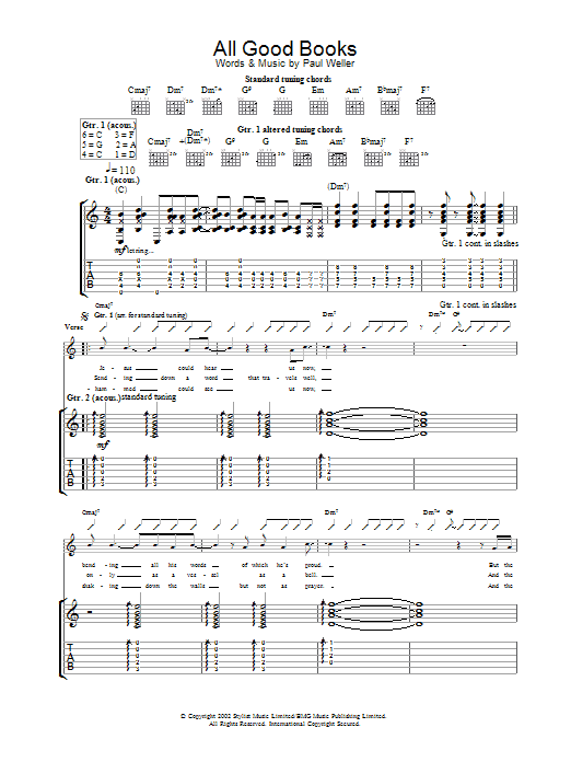 Download or print Paul Weller All Good Books sheet music, chords and digital score arranged for Guitar Tab. This Pop score includes 4 page(s).