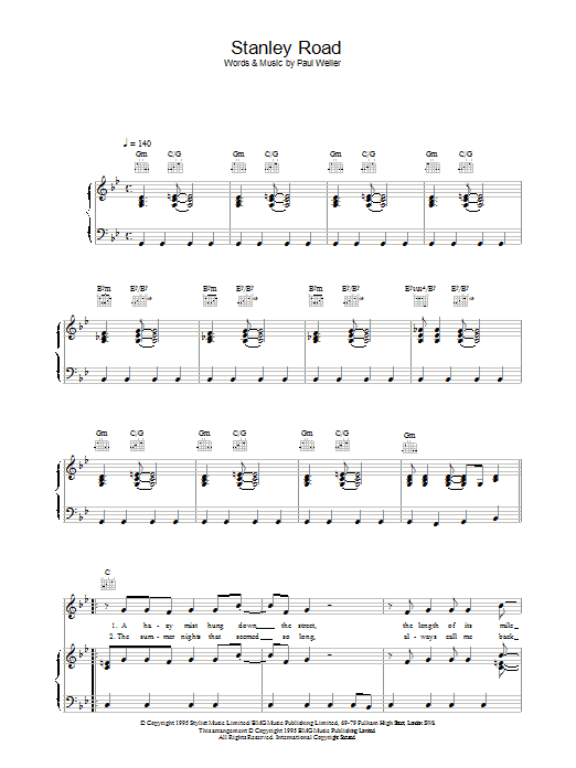 Download or print Paul Weller Stanley Road sheet music, chords and digital score arranged for Guitar Tab. This Rock score includes 10 page(s).
