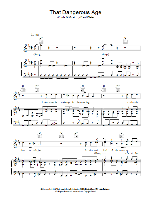 Download or print Paul Weller That Dangerous Age sheet music, chords and digital score arranged for Piano, Vocal & Guitar Chords. This Rock score includes 6 page(s).