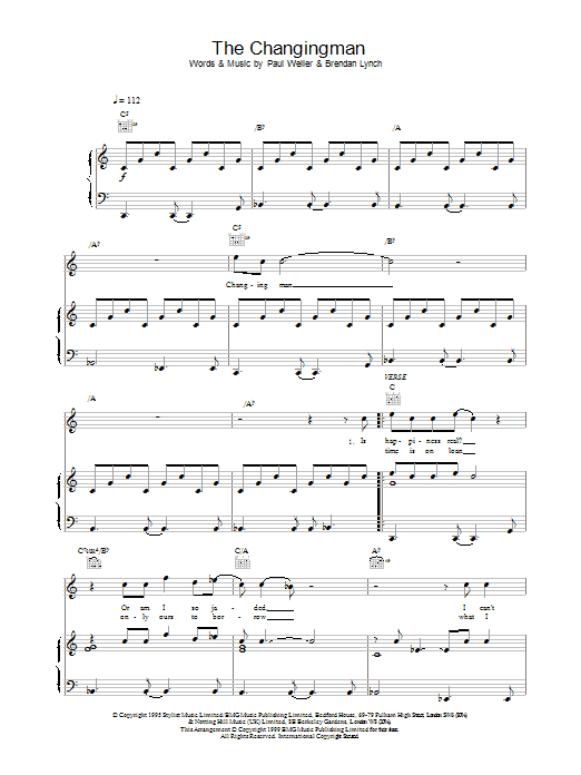 Download or print Paul Weller The Changingman sheet music, chords and digital score arranged for Lead Sheet / Fake Book. This Rock score includes 2 page(s).
