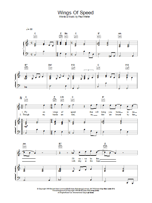 Download or print Paul Weller Wings Of Speed sheet music, chords and digital score arranged for Lead Sheet / Fake Book. This Pop score includes 3 page(s).