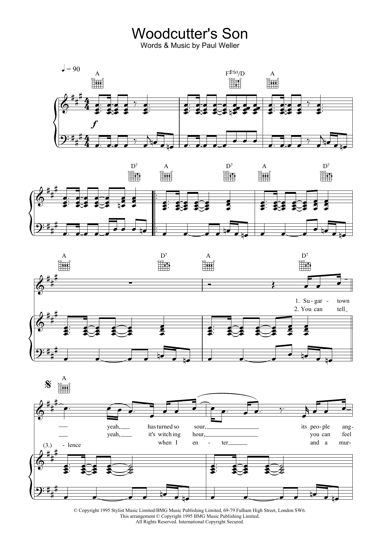 Download or print Paul Weller Woodcutter's Son sheet music, chords and digital score arranged for Guitar Tab. This Rock score includes 6 page(s).