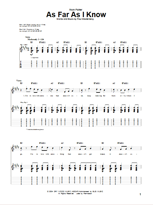 Download or print Paul Westerberg As Far As I Know sheet music, chords and digital score arranged for Guitar Tab. This Pop score includes 6 page(s).