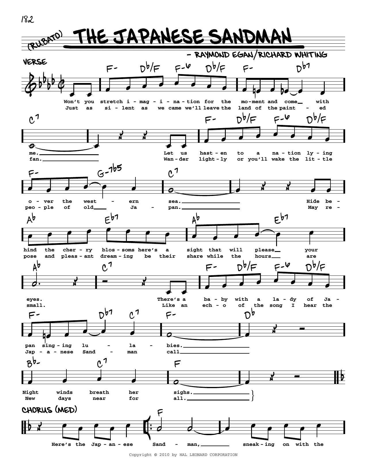 Download or print Paul Whiteman and His Orchestra The Japanese Sandman (arr. Robert Rawlins) sheet music, chords and digital score arranged for Real Book – Melody, Lyrics & Chords. This Jazz score includes 2 page(s).