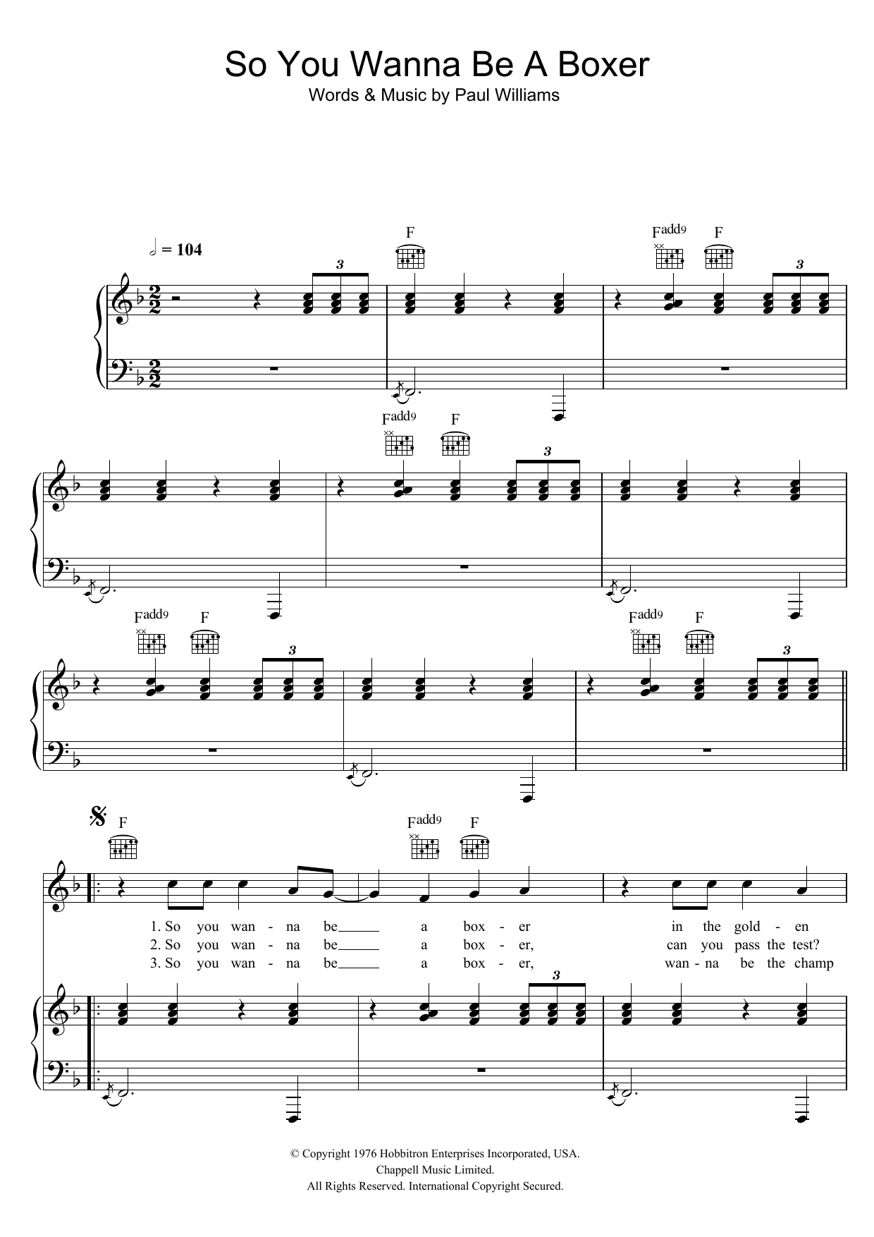 Quick facts So You Wanna Be A Boxer (from Bugsy Malone) about digital sheet music