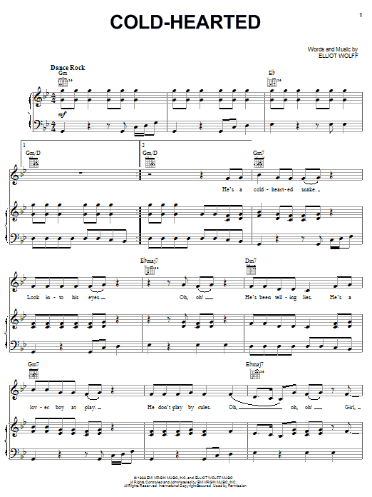 Download or print Paula Abdul Cold-Hearted sheet music, chords and digital score arranged for Piano, Vocal & Guitar Chords (Right-Hand Melody). This Pop score includes 5 page(s).
