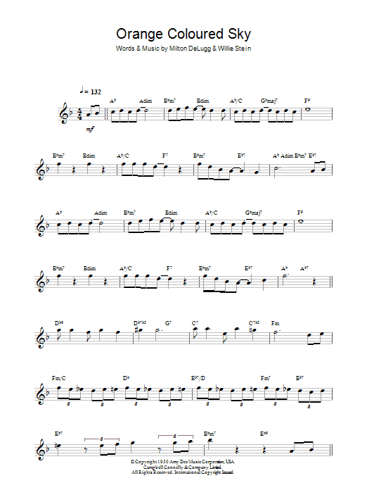 Download or print Peggy Lee Orange Coloured Sky sheet music, chords and digital score arranged for Lead Sheet / Fake Book. This Jazz score includes 2 page(s).