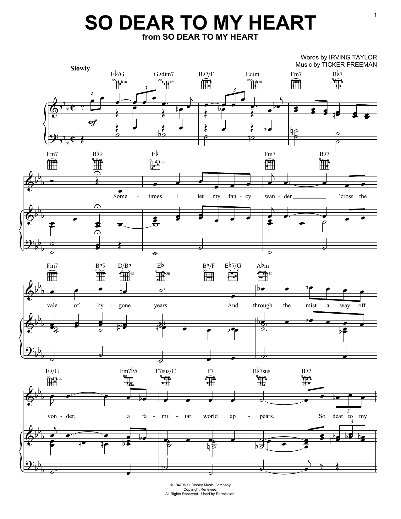 Download or print Peggy Lee So Dear To My Heart sheet music, chords and digital score arranged for Piano, Vocal & Guitar Chords (Right-Hand Melody). This Children score includes 4 page(s).