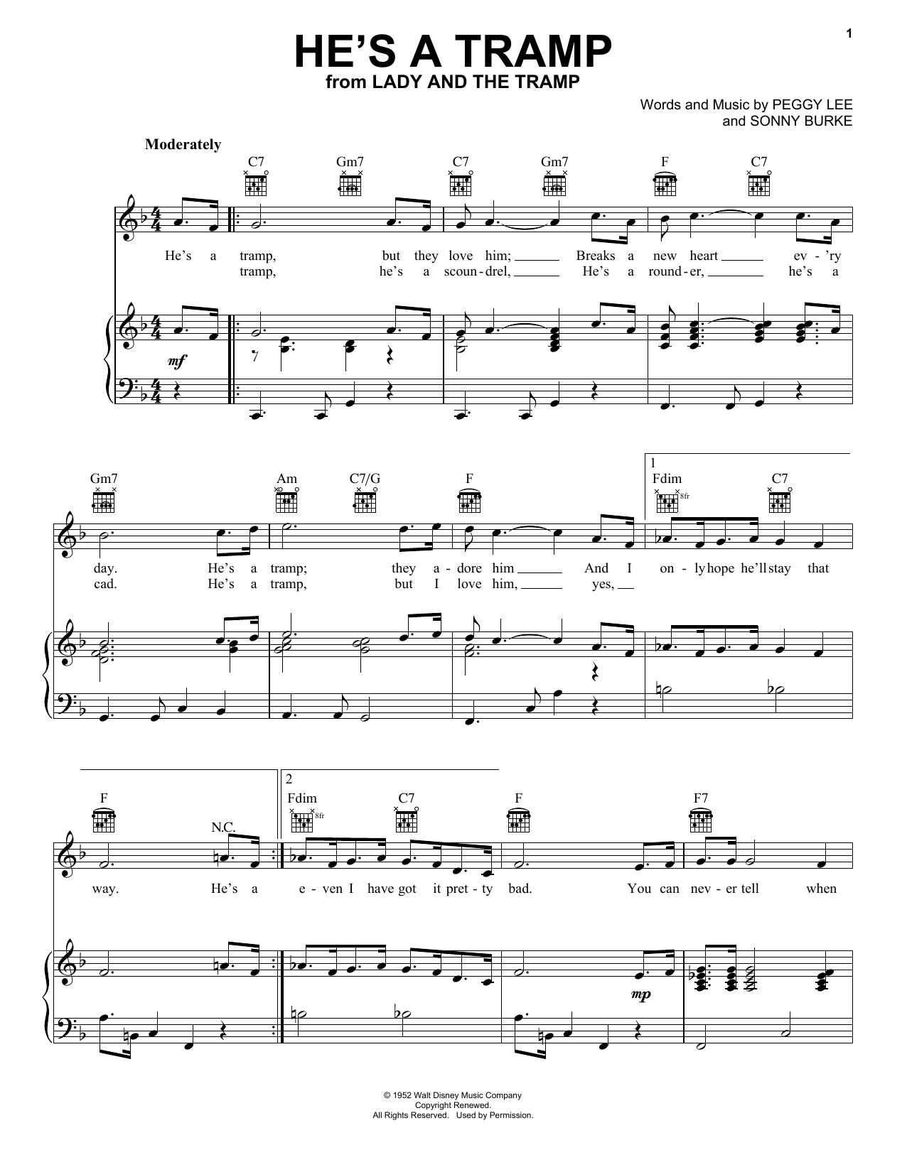 Download or print Peggy Lee He's A Tramp (from Lady And The Tramp) sheet music, chords and digital score arranged for Alto Sax Solo. This Children score includes 1 page(s).