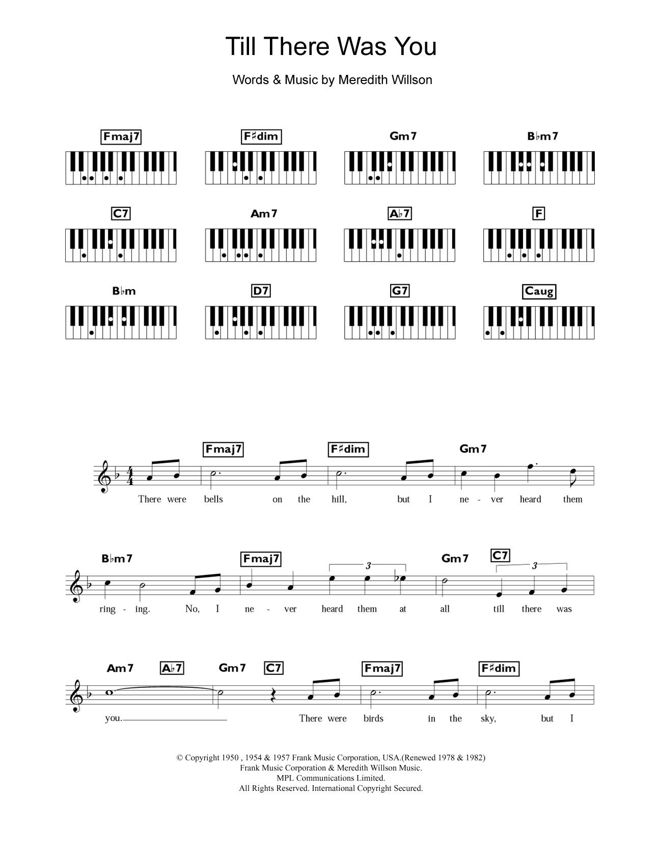 Download or print Peggy Lee Till There Was You (from The Music Man) sheet music, chords and digital score arranged for Piano Chords/Lyrics. This Musical/Show score includes 2 page(s).
