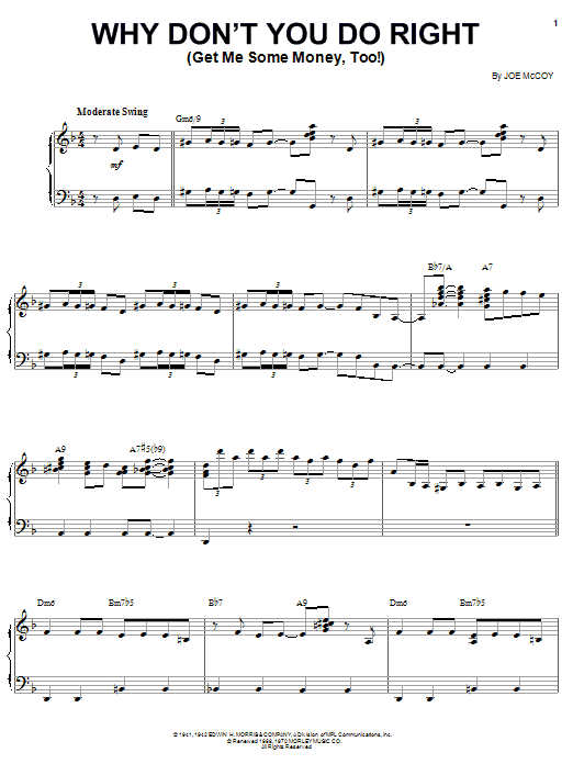 Quick facts Why Don't You Do Right (Get Me Some Money, Too!) about digital sheet music