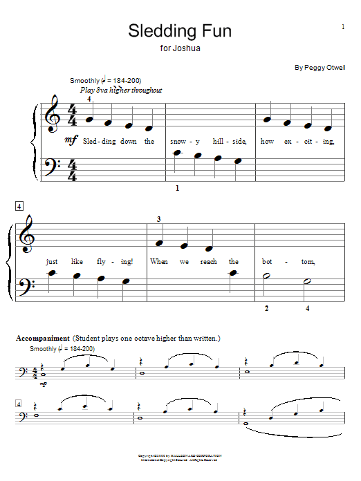 Download or print Peggy Otwell Sledding Fun sheet music, chords and digital score arranged for Educational Piano. This Children score includes 3 page(s).