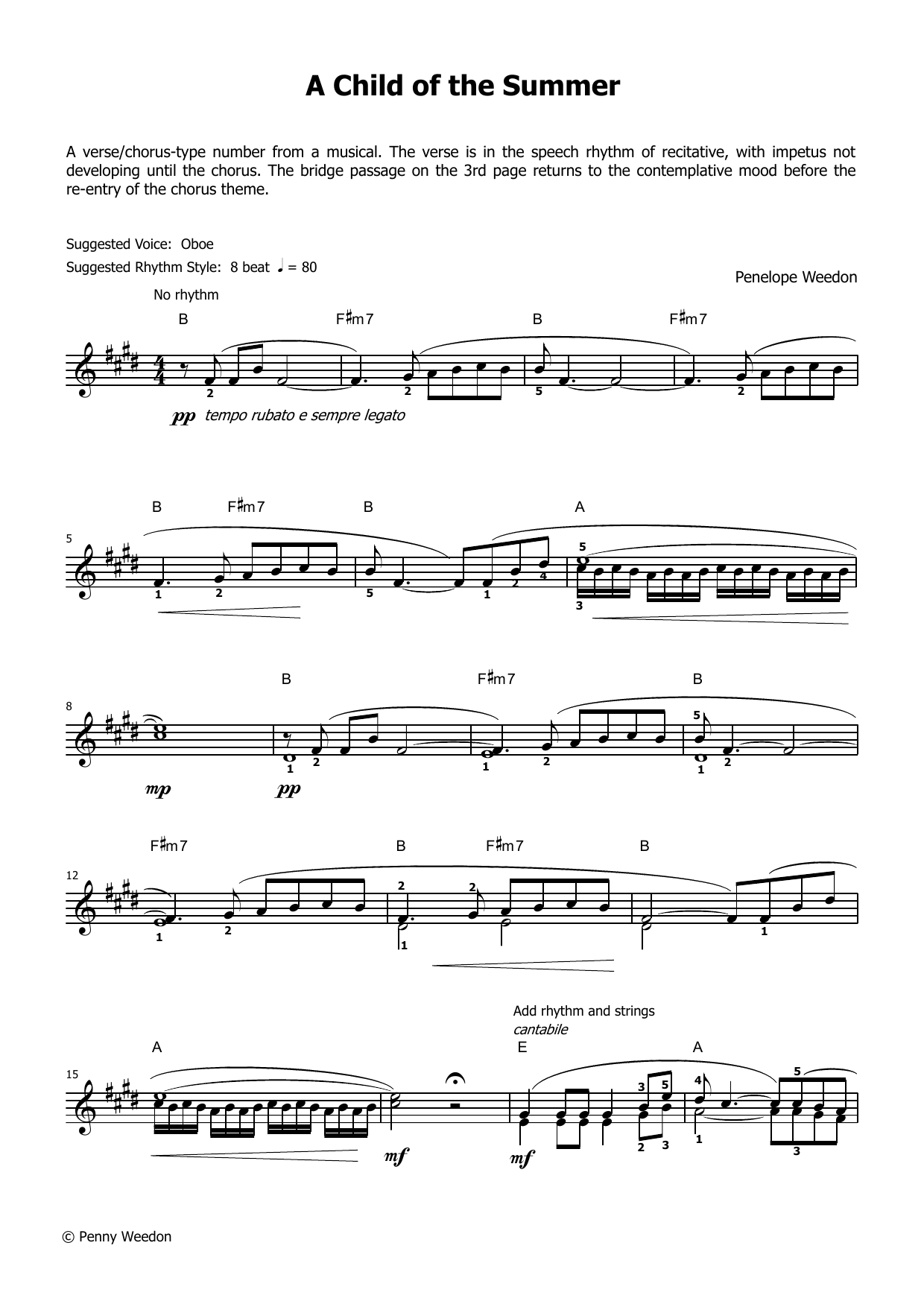 Download or print Penny Weedon A Child of The Summer (LCME Electronic Keyboard Grade 7 List B & C) sheet music, chords and digital score arranged for Piano Solo. This Instructional score includes 3 page(s).