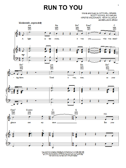 Download or print Pentatonix Run To You sheet music, chords and digital score arranged for Piano, Vocal & Guitar Chords (Right-Hand Melody). This Pop score includes 7 page(s).