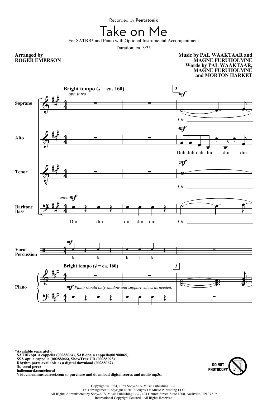 Quick facts Take On Me (arr. Roger Emerson) about digital sheet music