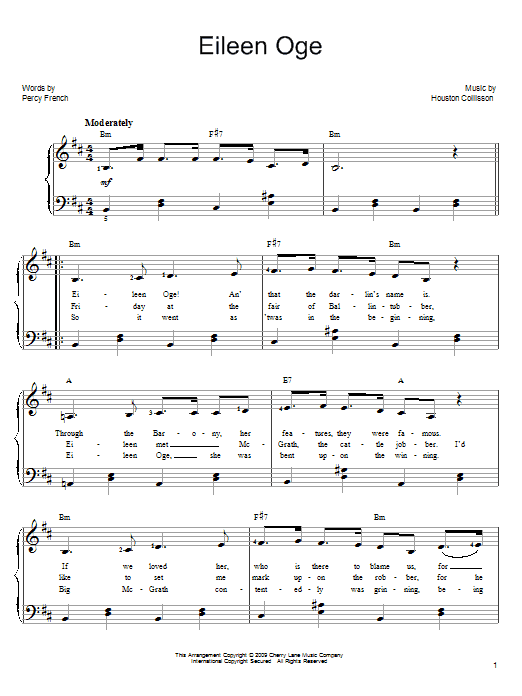 Download or print Percy French Eileen Oge sheet music, chords and digital score arranged for Easy Piano. This Folk score includes 3 page(s).
