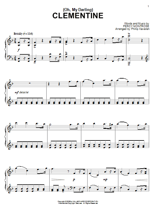 Download or print Percy Montrose (Oh, My Darling) Clementine sheet music, chords and digital score arranged for Super Easy Piano. This Children score includes 1 page(s).