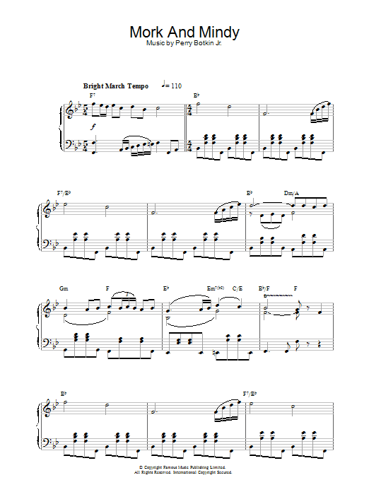 Download or print Perry Botkin, Jr. Mork And Mindy sheet music, chords and digital score arranged for 5-Finger Piano. This Film/TV score includes 3 page(s).