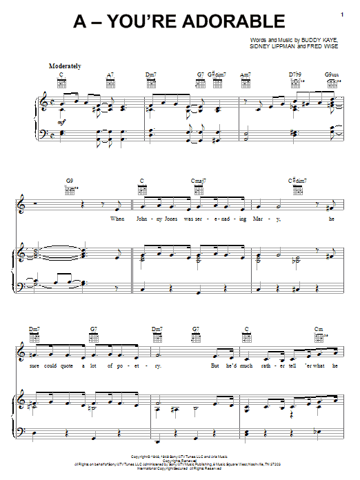 Download or print Perry Como A - You're Adorable sheet music, chords and digital score arranged for Piano, Vocal & Guitar Chords (Right-Hand Melody). This Children score includes 4 page(s).