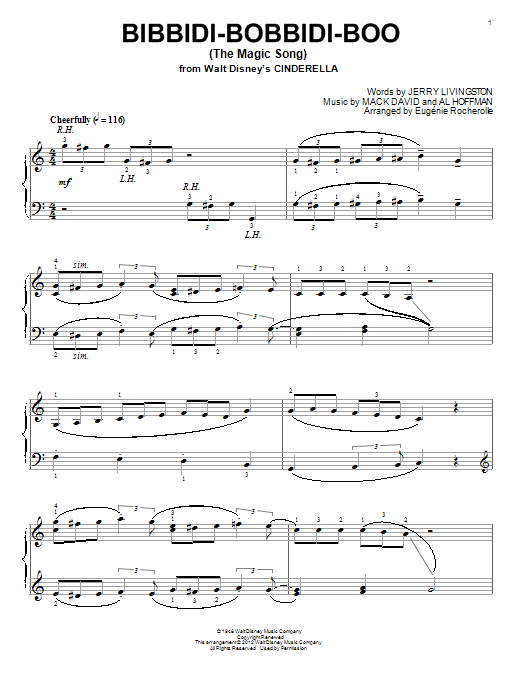 Quick facts Bibbidi-Bobbidi-Boo (The Magic Song) (from Cinderella) (arr. Eugenie Rocherolle) about digital sheet music