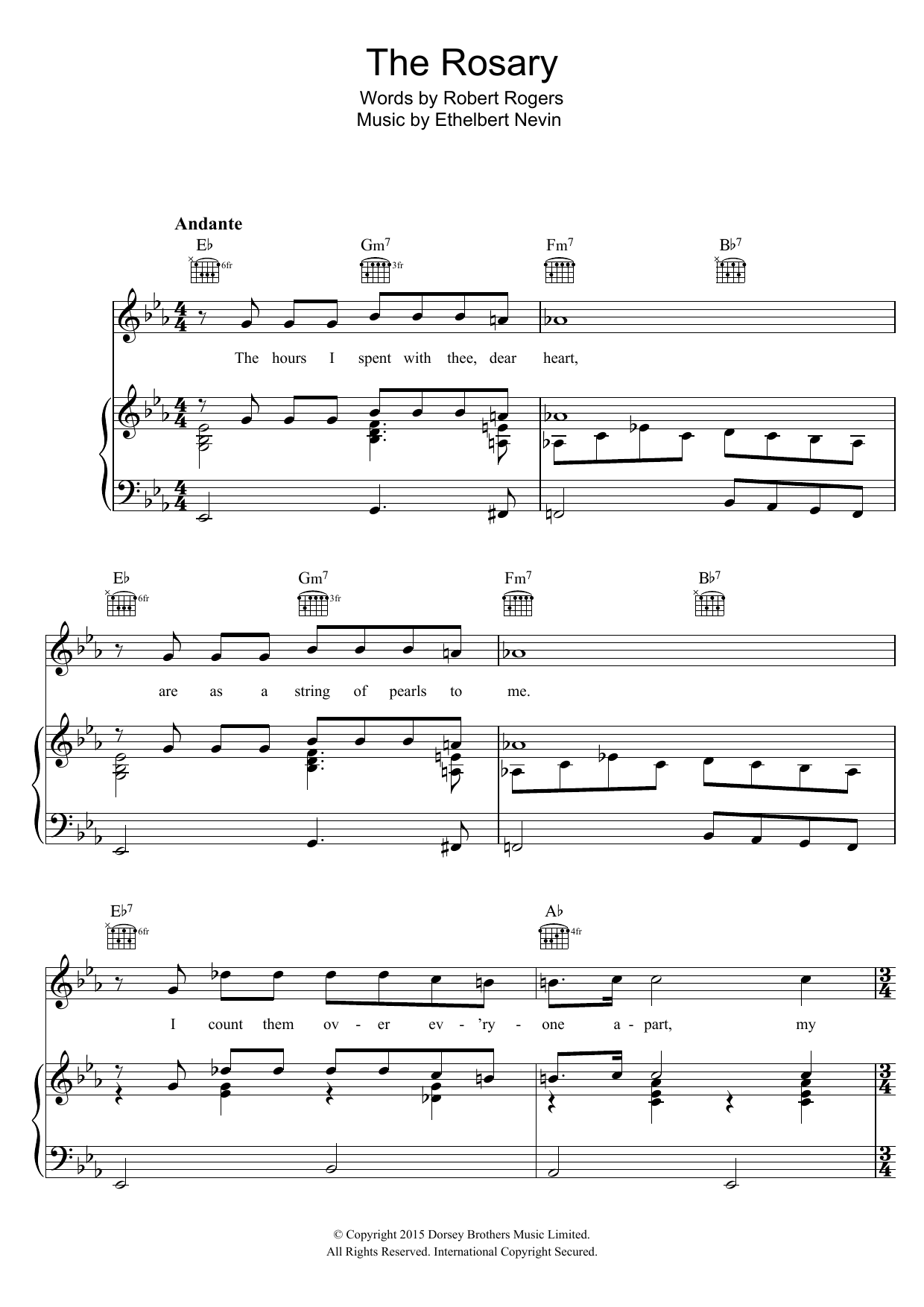 Download or print Perry Como The Rosary sheet music, chords and digital score arranged for Piano, Vocal & Guitar Chords. This Standards score includes 3 page(s).
