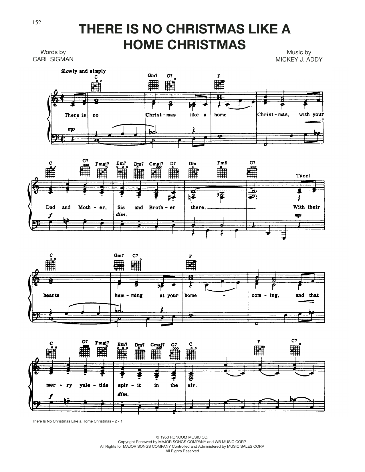 Download or print Perry Como There Is No Christmas Like A Home Christmas sheet music, chords and digital score arranged for Piano, Vocal & Guitar Chords (Right-Hand Melody). This Christmas score includes 2 page(s).