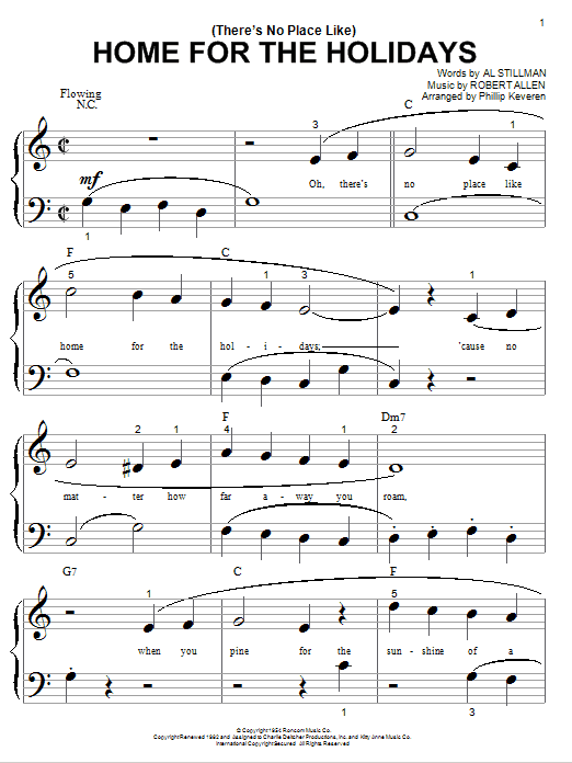 Download or print Perry Como (There's No Place Like) Home For The Holidays (arr. Phillip Keveren) sheet music, chords and digital score arranged for Beginning Piano Solo. This Christmas score includes 4 page(s).